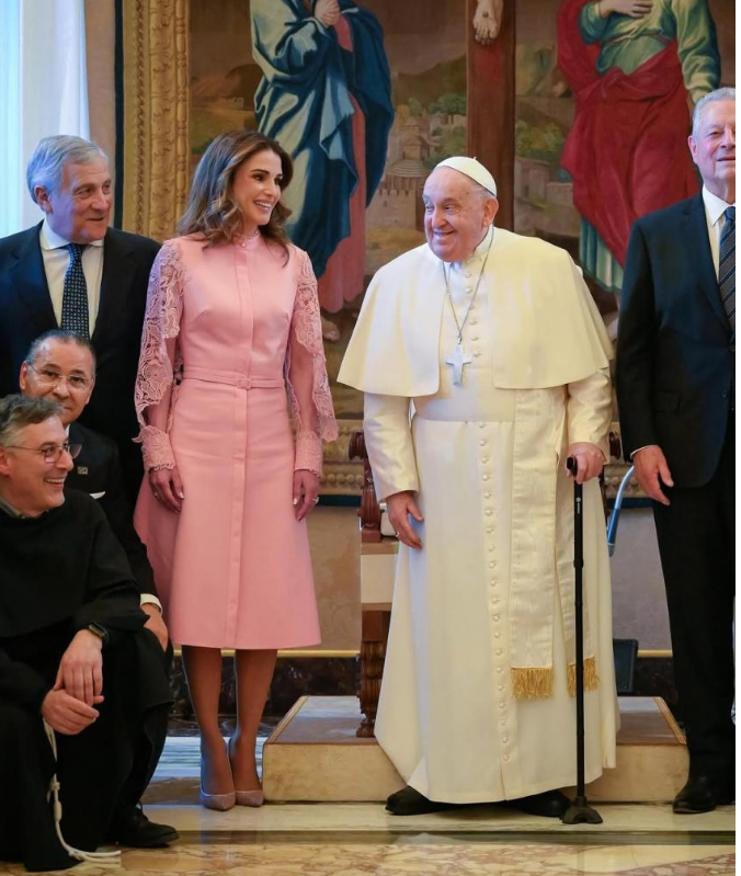كتبت جلالته عبر منشور لها في موقع انستقرام مساء الإثنين، "في الفاتيكان اليوم"