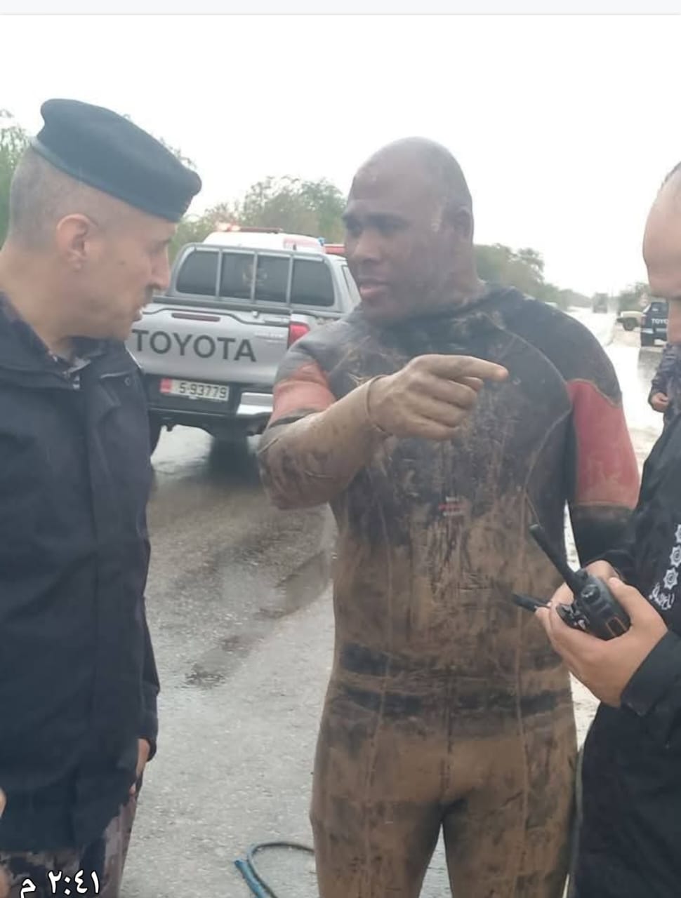 تمكن الغطاس الرقيب زاهر سعد العجالين اليوم من إنقاذ طفل جرفته السيول في منطقة الأغوار الجنوبية، والذي كان برفقة شقيقته التي توفيت غرقًا.