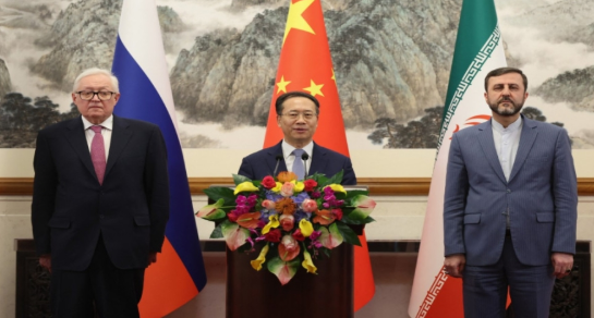 وقال نائب وزير الخارجية الصيني ما تشاوشو خلال مؤتمر صحفي مع نظيريه الروسي سيرغي ريابكوف والإيراني كاظم غريب آبادي "أجرينا تبادلا معمقا لوجهات النظر حول المسألة النووية ورفع العقوبات" و"شددنا على ضرورة وضع حد لكل العقوبات الأحادية غير المشروعة".