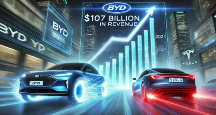 سجّلت الشركة الرائدة إيرادات بلغت 777,1 مليار يوان (107,2 مليار دولار) في 2024، متجاوزة بذلك إيرادات تسلا للعام الماضي البالغة 97.7 مليار دولار والتي أعلنتها سابقا.