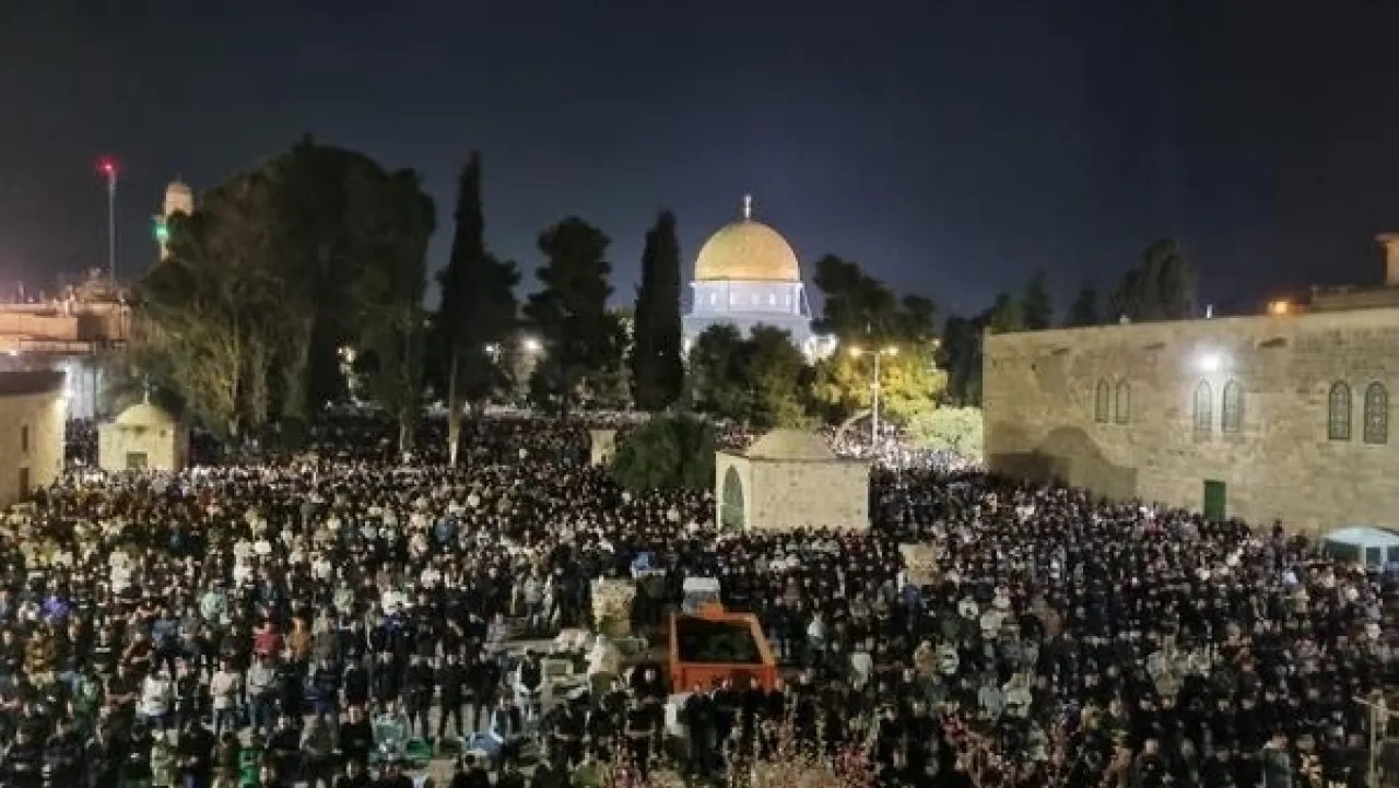 أدى 180 ألف مصل ومصلية، مساء اليوم الأربعاء، صلاتي العشاء والتراويح في رحاب المسجد الأقصى المبارك - الحرم القدسي الشريف بمدينة القدس المحتلة.