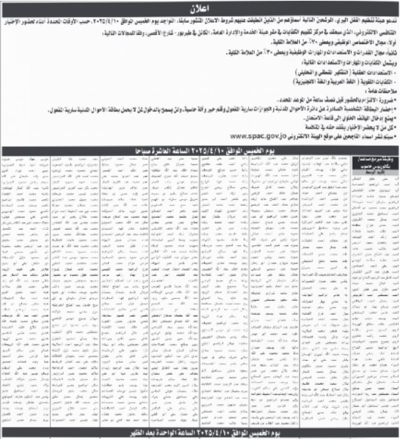 دعت هيئة تنظيم قطاع النقل البري مرشحين لإجراء المقابلات الشخصية لاستكمال إجراءات التعيين.