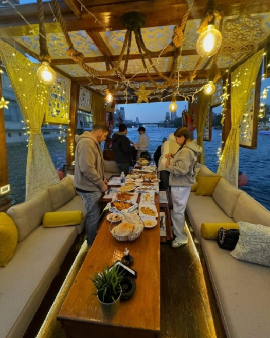 واستعرضت ايضاً السفرة المميزة التي تم تجهيزها للإفطار وسط النيل مع أفراد عائلتها وعائلة زوجها، وكانت الأجواء رمضانية هادئة، وهو ما تفاعل معه الجمهور بشكل واسع متمنيين لها المزيد من السعادة وراحة البال في حياتها الشخصية.