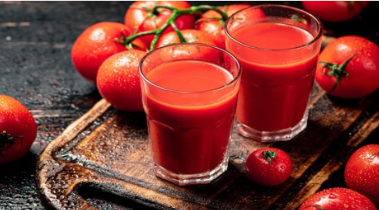 عصير الطماطم غني بالليكوبين، الذي يساعد في مكافحة الجذور الحرة ويقلل من خطر الإصابة بالأمراض المزمنة والالتهابات. كما يحتوي على فيتامين C الذي يساعد في تفتيح لون البشرة وتعزيز إنتاج الكولاجين، مما يُساهم في الحصول على بشرة صحية ومتوهجة.