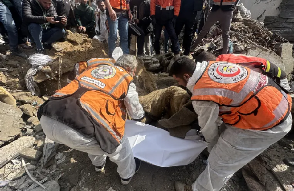 ووصف المرصد الأورومتوسطي في بيان صحافي على موقعه الإلكتروني اليوم الاثنين، الجريمة بـ"أكبر عملية إعدام جماعي لعاملين إنسانيين في تاريخ الحروب الحديثة"، مؤكدا أن الأدلة الميدانية تشير إلى أن القوات الإسرائيلية أعدمت ميدانيا جميع الضحايا، وهم 8 مسعفين من الهلال الأحمر الفلسطيني، و5 من طواقم الدفاع المدني، بالإضافة إلى موظف تابع لـ"أونروا"، ثم دفنت معظم جثثهم في حفرة عميقة طمرت بالرمال، بعد أن دمرت مركباتهم بالكامل، في مشهد مروع يشكل انتهاكا جسيما لقواعد القانون الدولي الإنساني، وجريمة مركزية في صلب الإبادة الجماعية المتواصلة التي ترتكبها إسرائيل في قطاع غزة.