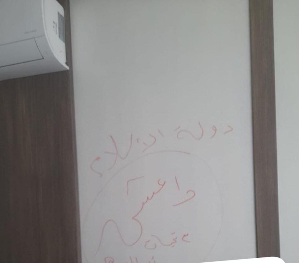وتمت الإشارة إلى أن المتهمين بعد إتمامهما لسرقاتهما، كتبا على مدخل المجمع عبارات: "دولة الإسلام: داعش"، ومن ثم تواريا الى جهة مجهولة، إلا أن الأجهزة تمكنت من القبض عليهما لاحقا.