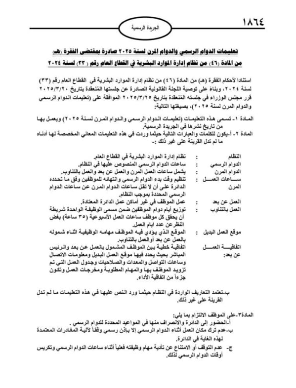 صدرت اليوم الخميس في الجريدة الرسمية تعليمات الدوام الرسمي والدوام المرن لسنة 2025.
