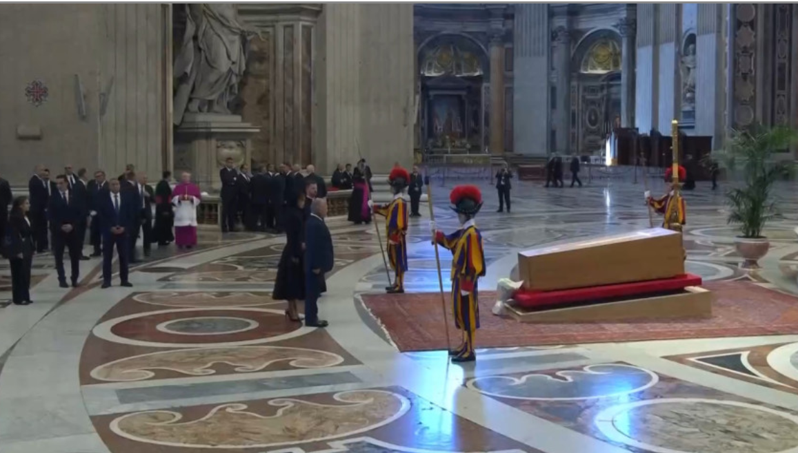 وألقى الملك والملكة نظرة الوداع على جثمان البابا فرنسيس.