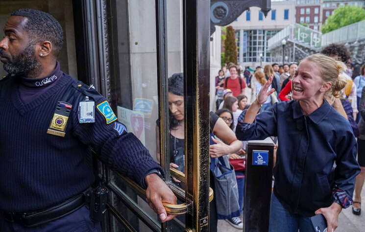 في تصعيد جديد للاحتجاجات التضامنية مع فلسطين داخل الجامعات الأمريكية، اقتحم عدد من المتظاهرين الملثمين، يوم الأربعاء، قاعة رئيسية داخل مكتبة “باتلر” المركزية في جامعة كولومبيا، ما أدى إلى مواجهة مشحونة مع أفراد الأمن الجامعي، بينما كان طلاب آخرون يحاولون الاستعداد لامتحانات نهاية العام.