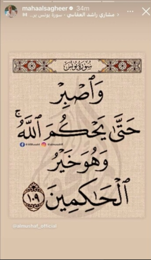 وأضاف المنشور: "لا أرغب في الخوض بتفاصيل هذا الموضوع، فسبحان مقلّب القلوب ومبدّلها، أتمنى لها السعادة والنجاح في قرارها وحياتها الجديدة التي فاجأتني كما فاجأتكم. ربنا يوفقها في مستقبلها وخياراتها".
