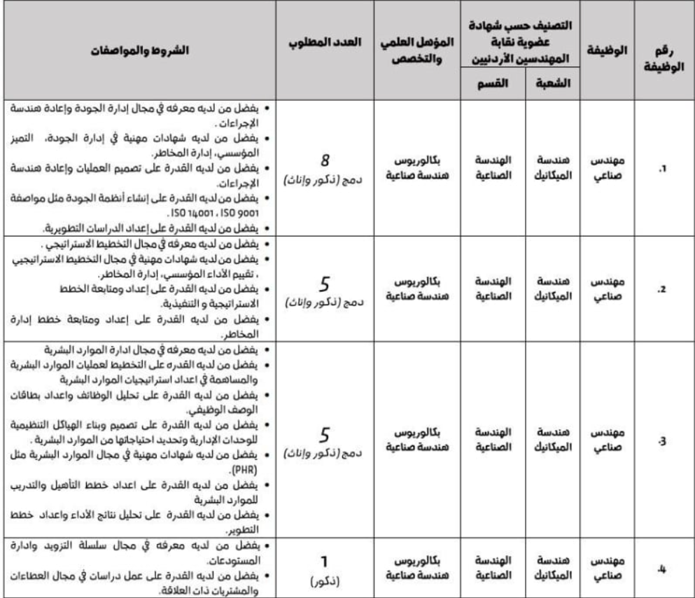 تعلن أمانة عمان الكبرى عن حاجتها لتعيين عدد من المهندسين الصناعيين بموجب عقد شامل لجميع العلاوات، وذلك وفقًا للشروط والمواصفات التالية: