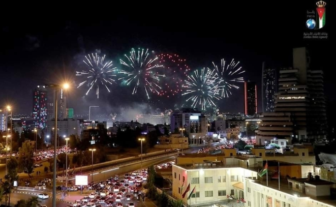 في العاصمة عمّان، ستنطلق الألعاب النارية من جبل القلعة وحدائق الملك عبد الله الثاني ابن الحسين في منطقة المقابلين، بالإضافة إلى أبراج السادس.
