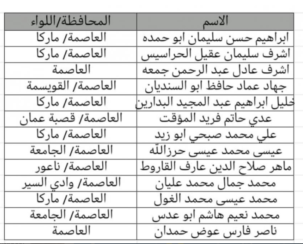 دعت وزارة الأوقاف والشؤون والمقدسات الإسلاميّة المرشحين التالية أسماؤهم الذين تم اختيارهم وفقاً لأعلى العلامات في الامتحانات التنافسية من تعليمات استقطاب واختيار وتعيين الموظفين في الوظائف الحكومية التواجد في مبنى الوزارة ، وذلك لإجراء المقابلة الشخصية لوظيفة محاسب يوم الثلاثاء الموافق 2025/6/3من الساعة التاسعة صباحاً وحتى الساعة الحادية عشر .
