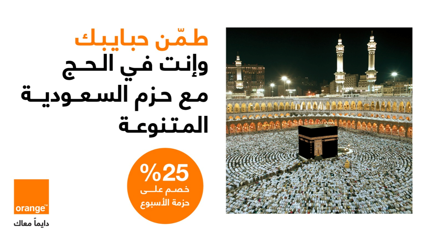 انطلاقاً من حرصها المستمر على تلبية احتياجات الحجّاج الأردنيين في المملكة العربية السعودية، أعلنت أورنج الأردن عن تحديث حزم التجوال من خلال طرح مجموعة من العروض المتنوعة والخصومات الحصرية على حزم المسافر إلى السعودية، مما يتيح للحجاج البقاء على تواصل دائم مع عائلاتهم أثناء تجوالهم في المملكة العربية السعودية لتأدية مناسك الحج.