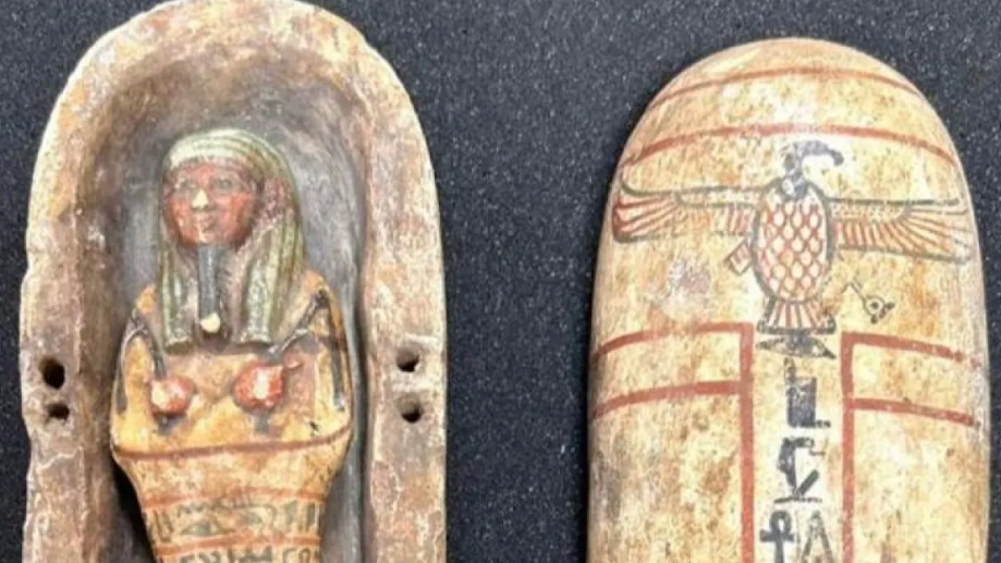 وقالت الوزارة إن القطع المستردة تضمنت تابوتًا نذريًا من الحجر الجيري، تمثالًا لرجل من الحجر الجيري، تمثالًا خشبيًا للإله أنوبيس على هيئة ابن آوى حارس المقبرة، ويدين خشبيتين منزوعتين من توابيت ملونة، وثلاث لفافات بردي مختومة بأختام ملكية نادرة، بالإضافة إلى وعاء أسطواني لحفظ اللفافات مدون عليه باللغة الهيروغليفية.