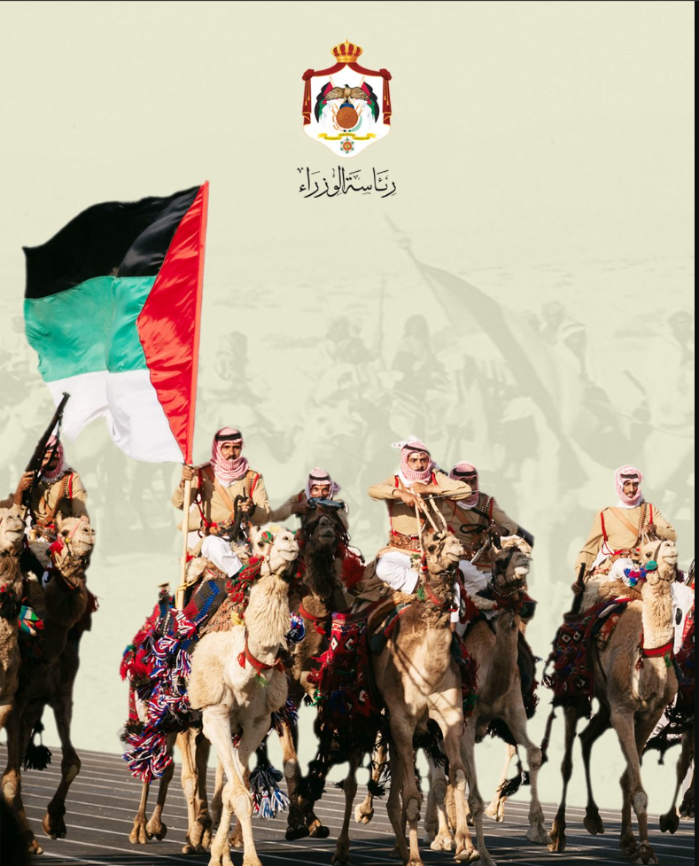 ونشرت رئاسة الوزراء عبر منصاتها على مواقع التواصل الاجتماعي صورة مرفقة بتعليق : "في ذكرى الثورة العربية الكبرى ويوم الجيش، نستحضر تضحيات جنودنا البواسل، ونفخر برجال جيشنا العربي، حُماة الوطن ورايته".