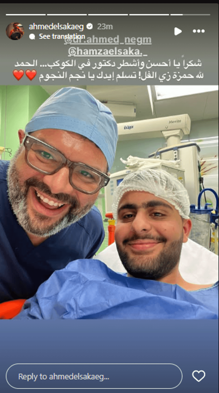 وأوضح السقا أن الجراحة كانت ناجحة وأن حمزة عاد إلى منزله فور تحسن حالته، متوقعًا عودته إلى حياته الطبيعية خلال أيام قليلة.