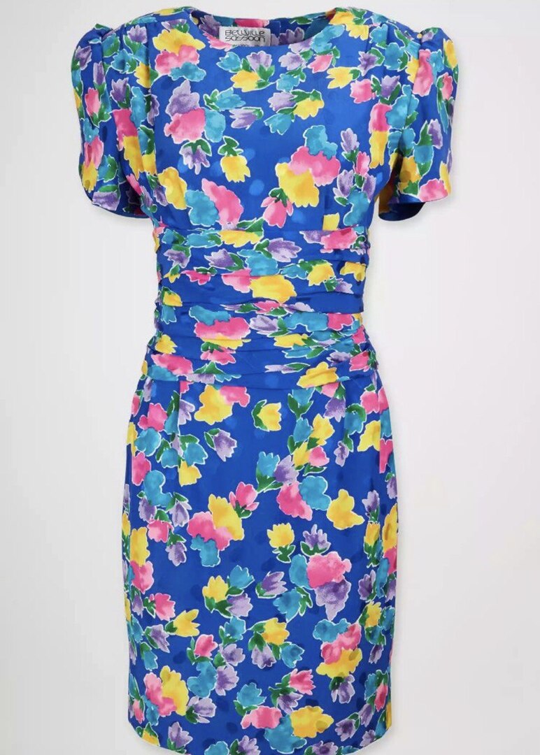 ويتميز الفستان بأكمام منفوخة، ويجسد تصميمه صيحات الموضة الجريئة في تلك الحقبة.