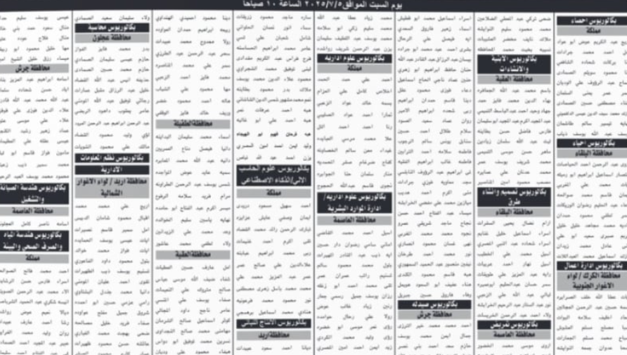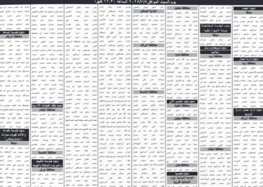 دعت وزارة الاوقاف والشؤون والمقدسات الاسلامية، وزارة النقل، وزارة العدل وزارة الصحة، وزارة الزراعة، وزارة الشباب، وزارة الاشغال العامة والإسكان، هيئة النزاهة ومكافحة الفساد، مستشفى الأمير حمزة، سلطة وادي الأردن، دائرة قاضي القضاة، دائرة الافتاء العام، دائرة الاراضي والمساحة دائرة الاحصاءات العامة، المؤسسة العامة للضمان الاجتماعي، المؤسسة الاستهلاكية المدنية، المؤسسة الاردنية لتطوير المشاريع الاقتصادية، صندوق المعونة الوطنية المرشحين التالية أسماؤهم، لحضور الامتحان التنافسي الالكتروني، الذي سيعقد في مركز تقييم الكفايات في مقر هيئة الخدمة والإدارة العامة، الكائن في طبربور - شارع الأقصى.