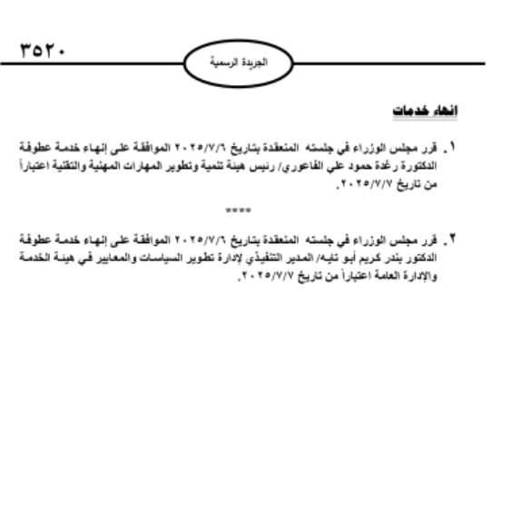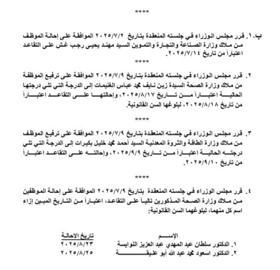 صدر في عدد الجريدة الرسمية الصادر اليوم الأربعاء، القرارات التالية لمجلس الوزراء: