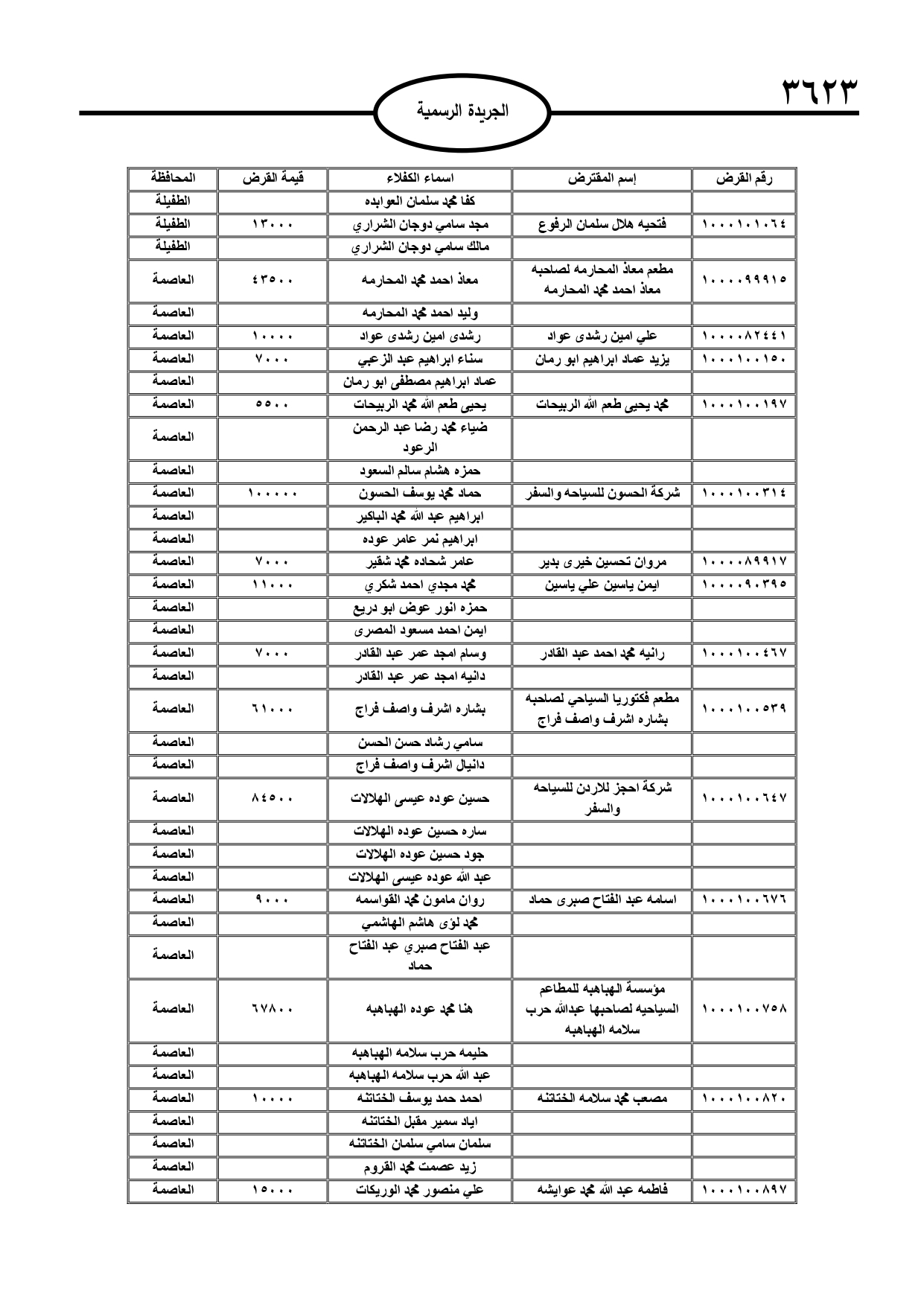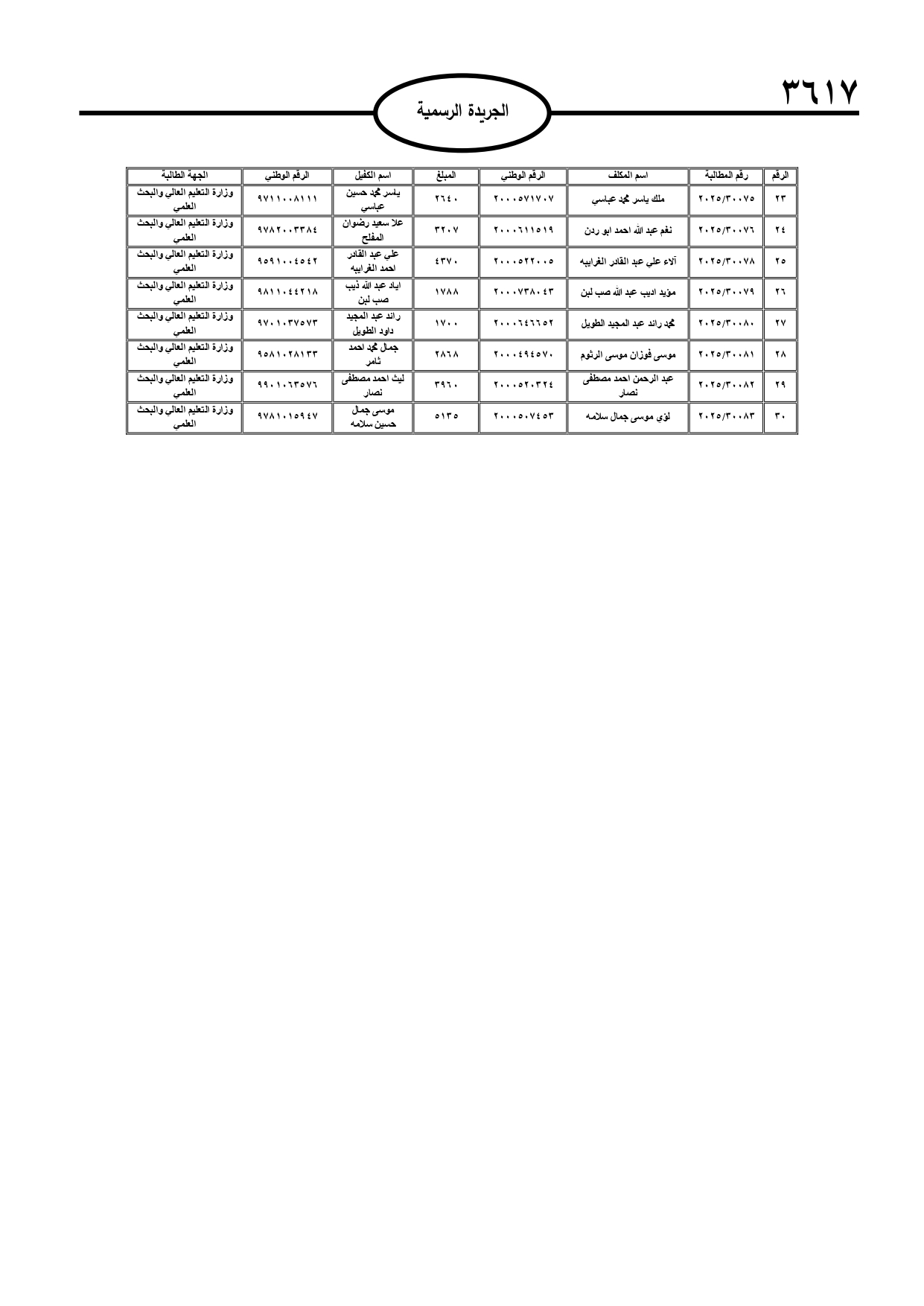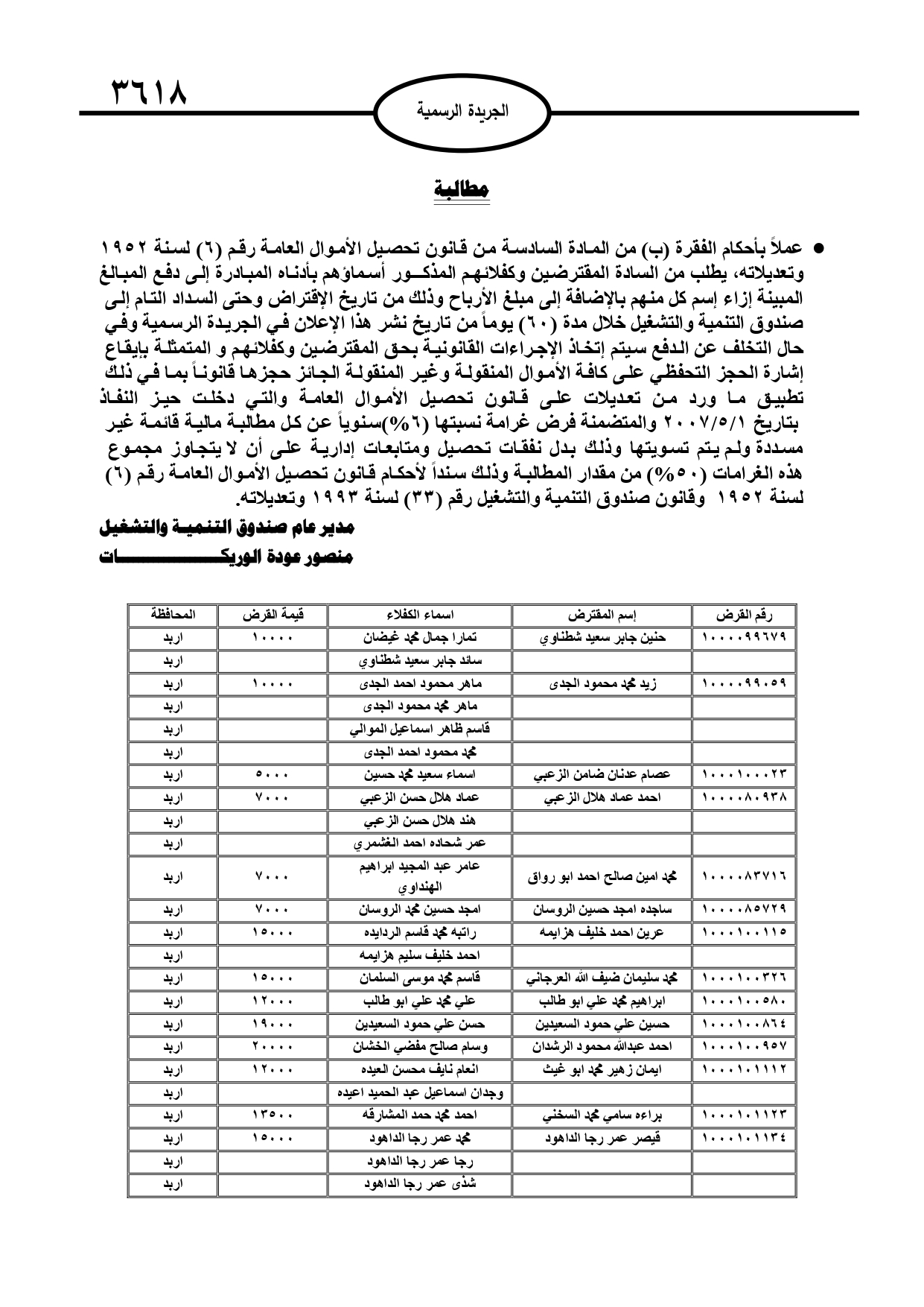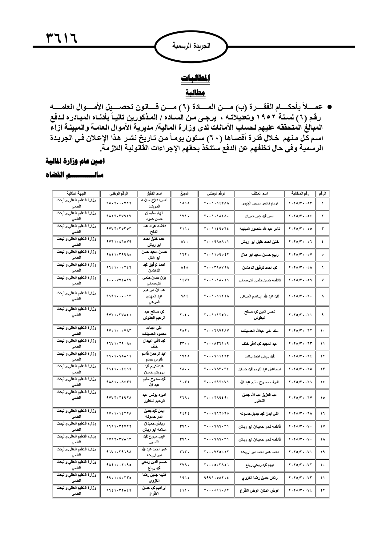 صدرت في عدد الجريدة الرسمية اليوم الأربعاء مطالبات مالية بحق مئات المواطنين الأردنيين لصالح عدد من الوزارات والمؤسسات الحكومية.