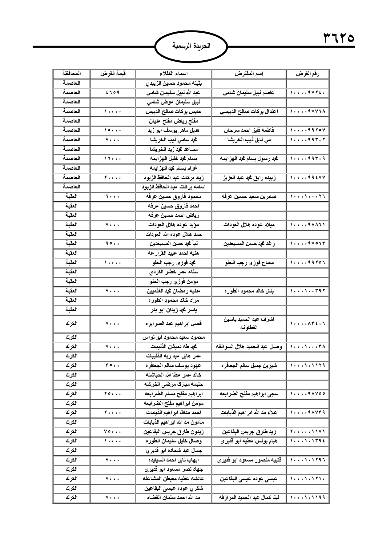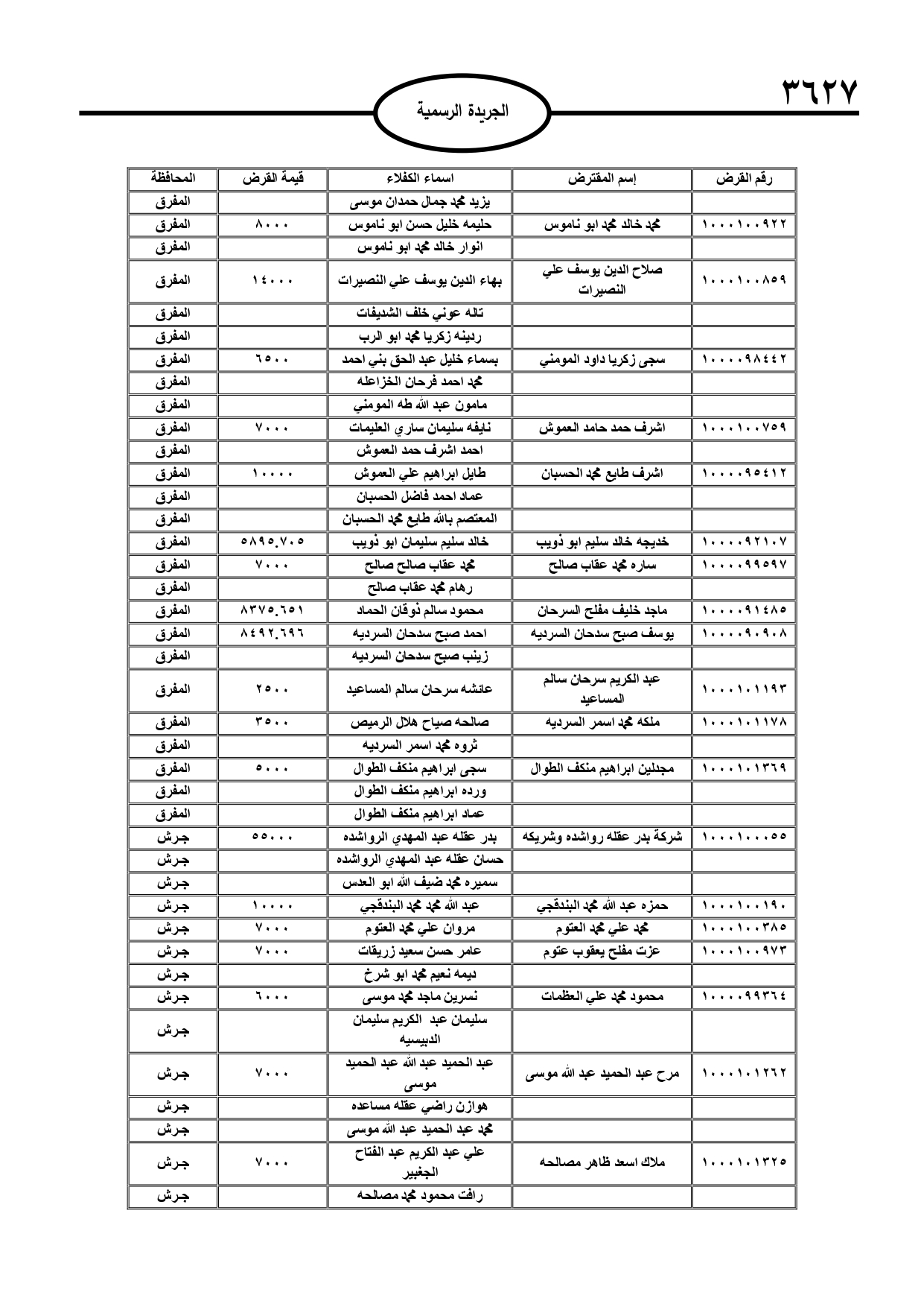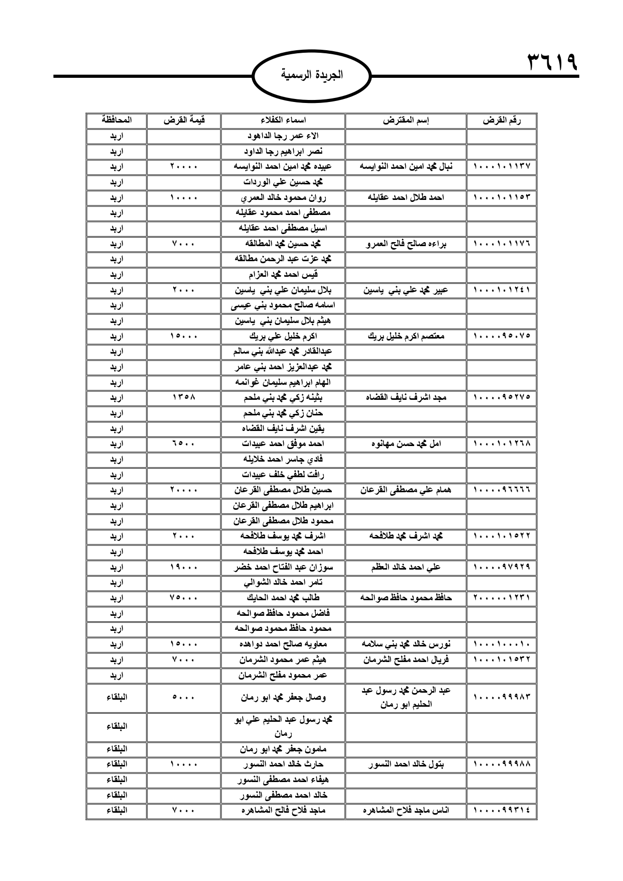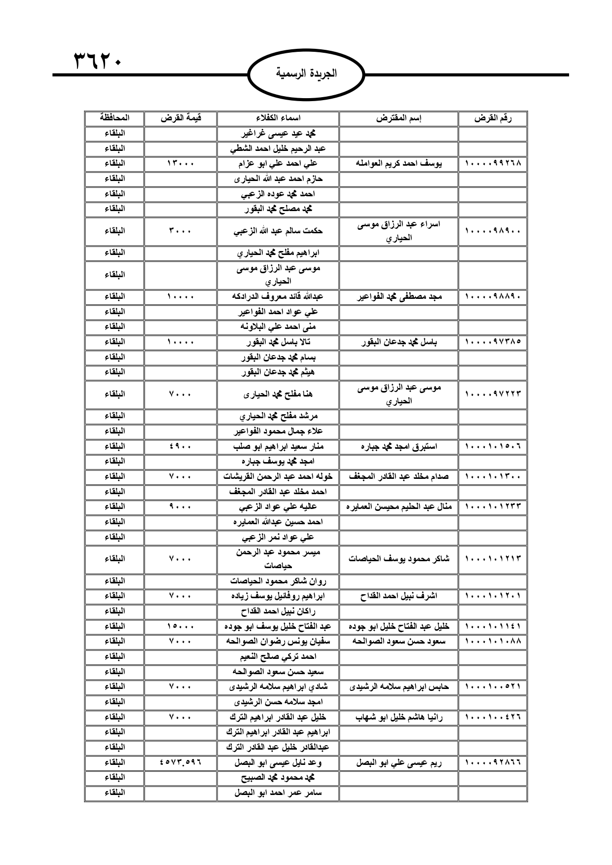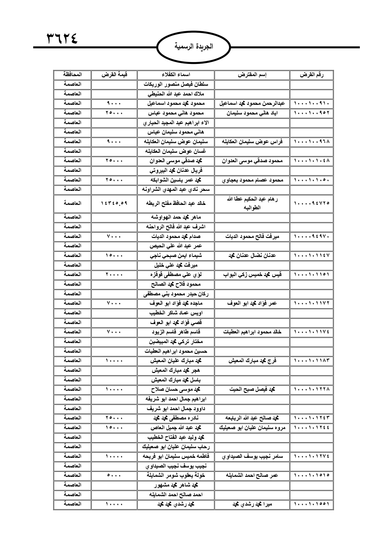 صدرت في عدد الجريدة الرسمية اليوم الأربعاء مطالبات مالية بحق مئات المواطنين الأردنيين لصالح عدد من الوزارات والمؤسسات الحكومية.