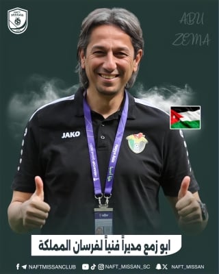 ونشرت الصفحة الرسمية للنادي العراقي: ادارة نادينا تتعاقد مع المدرب الاردني عبد الله ابو زمع لقيادة فرسان المملكة الموسم المقبل".