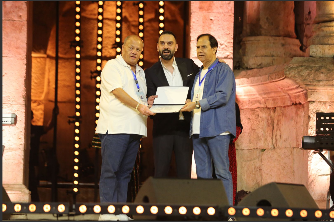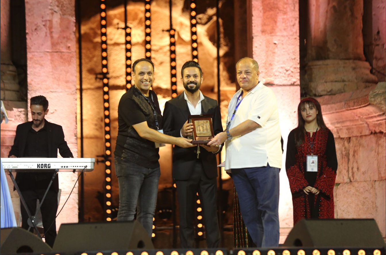 وتم تكريم الفنان نجم السلمان من قبل نقيب الفنانين ومدير المهرجان.