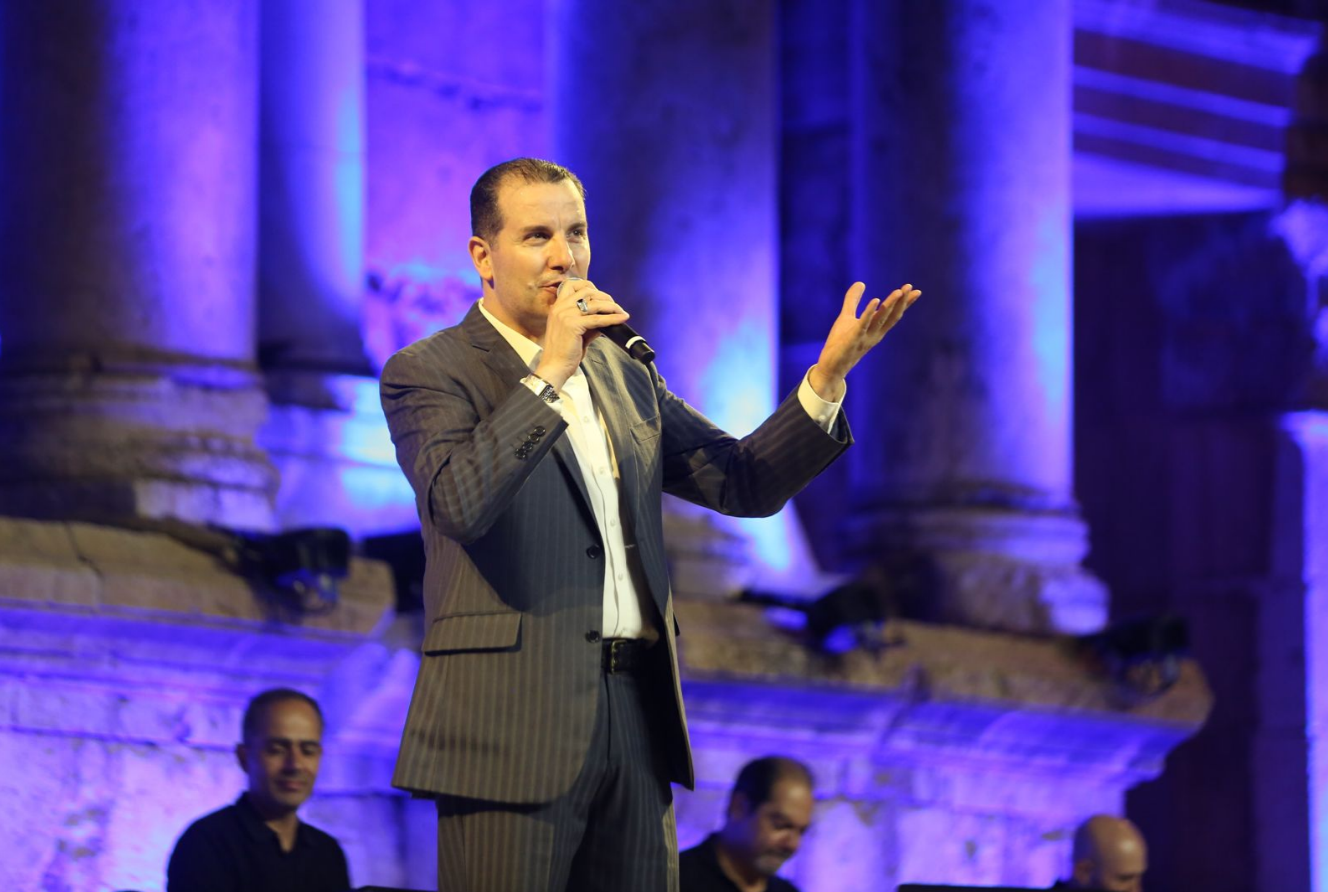 وأقبل المطرب ثمين حداد ليكتب اسم الوطن بصوته فشاركه الجمهور اغنية لاكتب اسمك يا بلادي ع الشمس الما بتغيب.