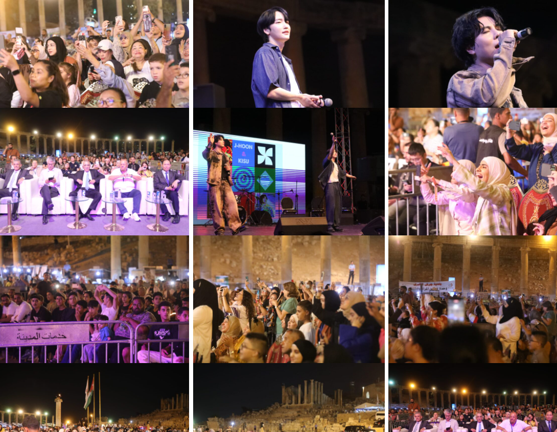 واستكمل الحفل بعرض فني للفنانين الكوريين “kisu ” و “jung hoon ”الذي كان جمهور جرش في انتظارهم ليعيشوا تجربة جديدة وفريدة من نوعها مع الفن الكوري الحديث.