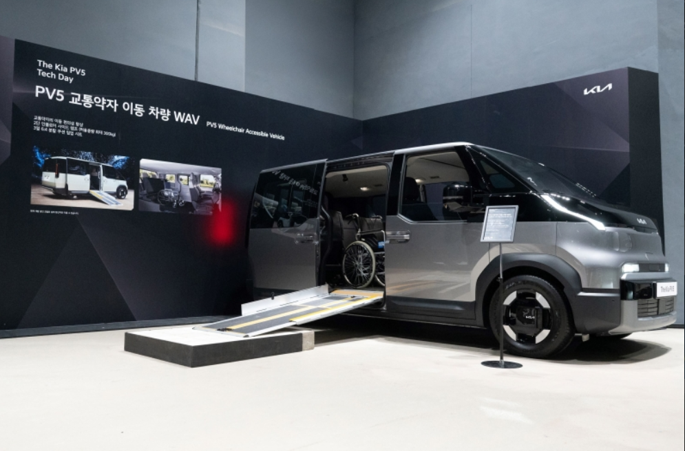 كما تعاونت "كيا" عن كثب مع مستخدمين من ذوي الإعاقة الحركية لتطوير نسخة PV5 WAV (المركبة المخصصة لاستخدام الكراسي المتحركة)، والتي تتميز بمسار دخول جانبي مائل بلطف، ونُظم تأمين عالمية، وأرضية منخفضة وواسعة، مما يلبي احتياجات الوصول التي غالبًا ما تُغفل في هذه الفئة.