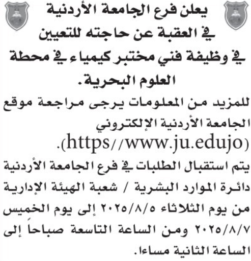 اعلنت مؤسسات حكومية عن حاجتها لتعبئة وظائف شاغرة اليوم الاثنين.