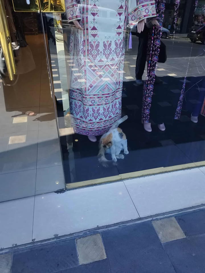 في مشهد إنساني لافت، أتاح صاحب محل ملابس في حي نزال بالعاصمة عمّان لقطة شاردة الاحتماء من حرارة الشمس داخل فترينة العرض الخاصة بمحله، وتظهر القطة وهي مسترخية بين الملابس المعروضة، في لحظة هدوء وسط زحام يوم صيفي حار.