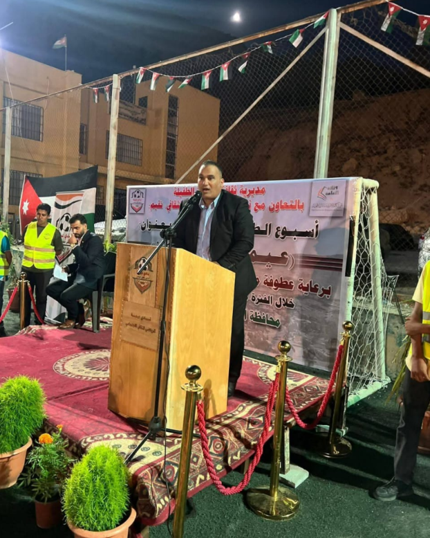 ثم ألقى مدير ثقافة الطفيلة، الدكتور سالم الفقير، كلمة عبّر فيها عن المكانة الوجدانية التي تحتلها الطفيلة في الذاكرة الوطنية، مستعرضًا في كلماته بحرًا من المفردات الوطنية والوجدانية التي حفزت الحضور على الاعتزاز بالوطن، مشيرًا إلى أن الثقافة ليست ترفًا، بل هي نبع لا ينضب لبناء الإنسان وصياغة هويته بين الحين والآخر، مؤكدًا أن هذا الأسبوع الثقافي يأتي ضمن جهود وزارة الثقافة لإشراك المجتمع المحلي في الفعل الإبداعي والاحتفاء بالهوية الأردنية المتنوعة. كما أظهر الفقير في كلمته أهمية الثقافة كقيمة عليا تُسهم في تعزيز اللحمة الوطنية، ونشر قيم السلام والمحبة والانتماء العميق للوطن، مشيدا بدور أبناء وبنات عيمة في بناء الإنسان الأردني وتعزيز المكانة الوطنية لسيادة الدولة.