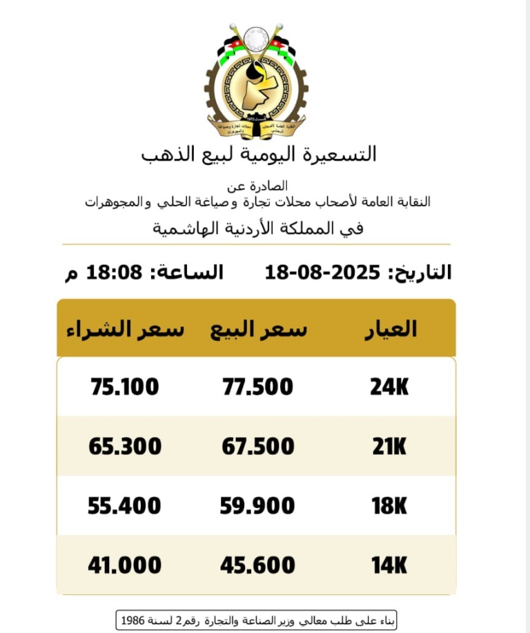 وبلغ سعر غرام الذهب عيار 21 الأكثر تداولا بين المواطنين 67.5 دينارا.