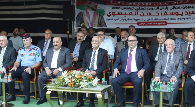رعى رئيس الديوان الملكي الهاشمي يوسف حسن العيسوي، مهرجان الولاء والتأييد لجلالة الملك عبدالله الثاني وسمو الأمير الحسين بن عبدالله الثاني، ولي العهد والذي نظمته عشائر زعبيّة إقليم الشمال، تأكيداً على اعتزازهم بالقيادة الهاشمية.