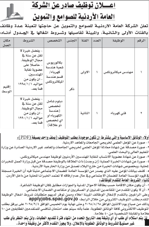 كما اعلنت الشركة العامة الأردنية للصوامع والتموين عن حاجتها لتعبئة وظائف شاغرة.