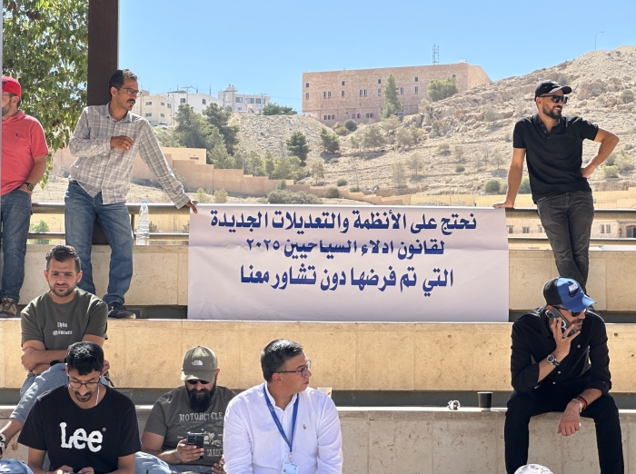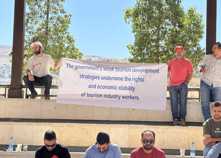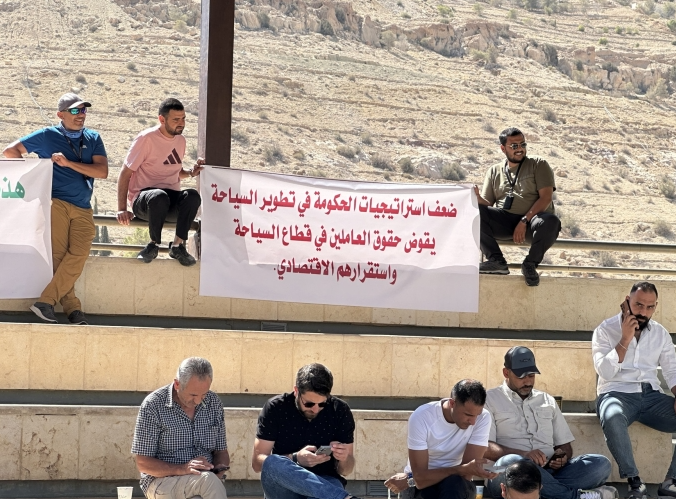 نظم عدد من أدلاء السياحة والسفر، الاثنين، وقفة احتجاجية في ساحة مركز الزوار في البترا جنوبي الأردن، للمطالبة بوقف العمل بالأنظمة المعدلة الخاصة بخدمات الأدلاء وجمعيتهم، والعودة إلى أنظمة عام 2020.