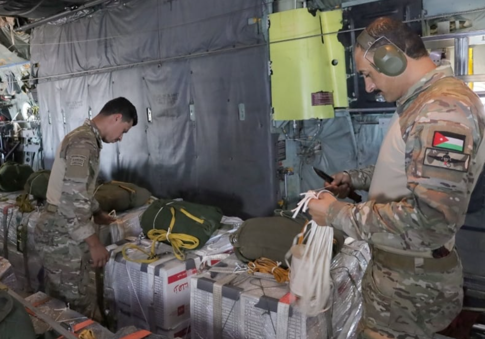نفذت القوات المسلحة الأردنية، اليوم الاثنين، عملية إنزال جوي إلى قطاع غزة، شاركت في العملية طائرات سلاح الجو الملكي الأردني وكل من جمهورية ألمانيا الاتحادية ودولة الإمارات العربية المتحدة وجمهورية اندونسيا، حيث تم إسقاط نحو (40) طناً من المواد الغذائية والإغاثية داخل القطاع.