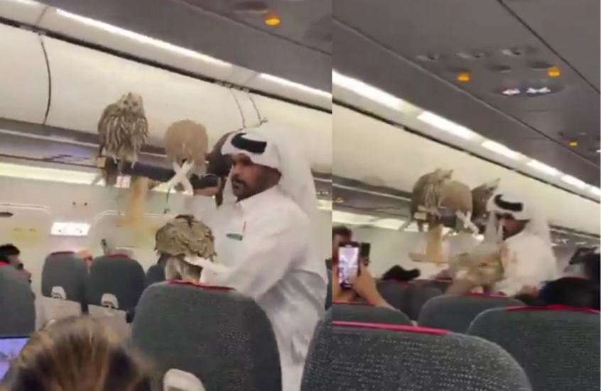 رجل يصطحب صقوره معه على متن الطائرة، مثيرًا تفاعلاً واسعًا .
