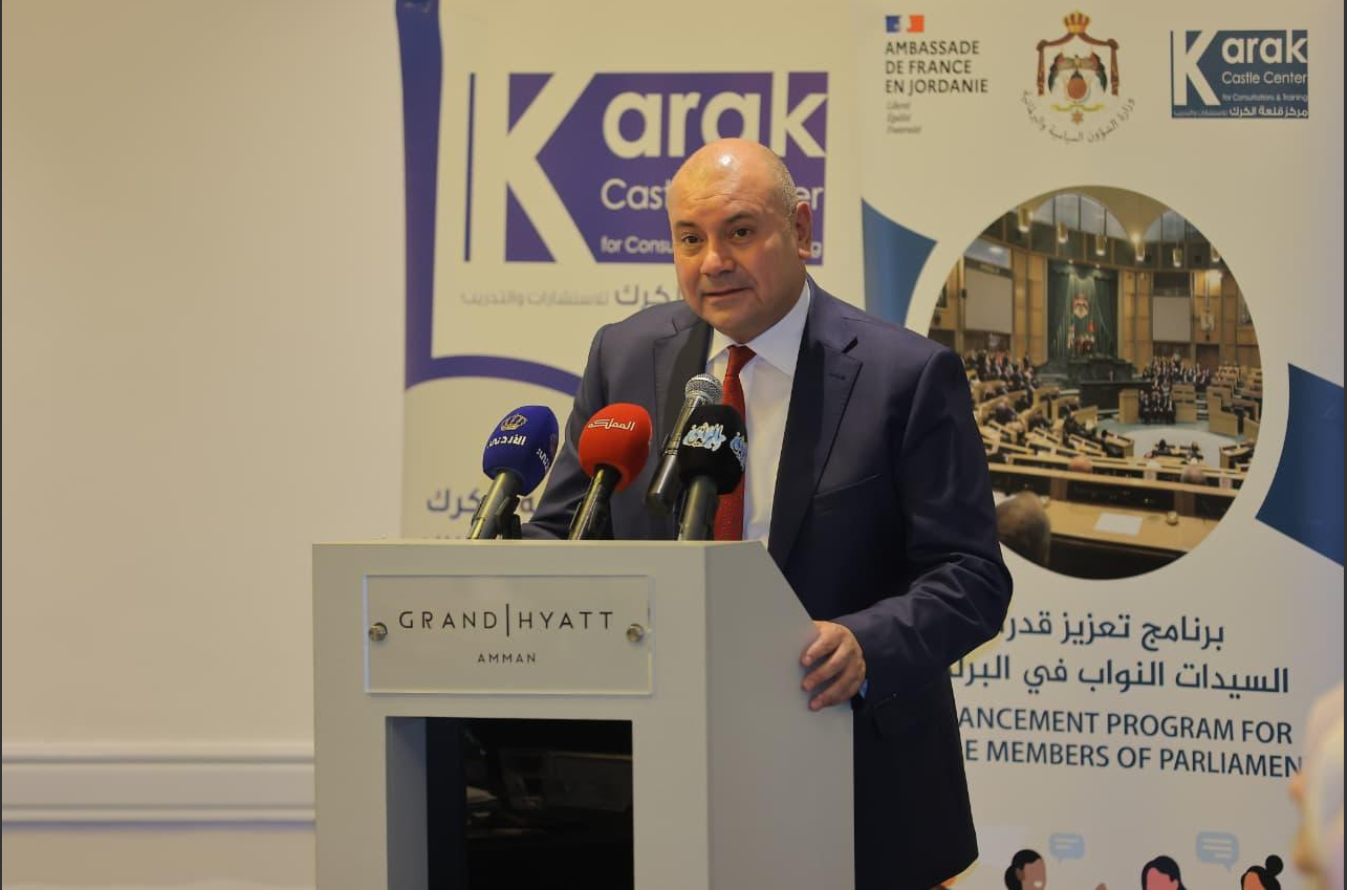 يأتي ذلك، خلال رعايته اليوم الثلاثاء، فعاليات البرنامج التدريبي المتخصص حول "تطبيقات عملية على الصياغة التشريعية ومهارات الحشد والتأييد داخل مجلس النواب" الذي ينفذه مركز قلعة الكرك للاستشارات والتدريب بالشراكة مع وزارة الشؤون السياسية والبرلمانية وملتقى البرلمانيات الأردنيات، للسيدات أعضاء مجلس النواب.