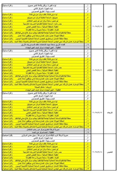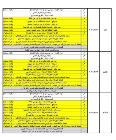 حيث ستكون ساعات الدوام الصباحي من يوم الأحد ولغاية يوم الأربعاء من الساعة 8:00 صباحًا وحتى الساعة 2:00 ظهرًا، ويوم الخميس من الساعة 8:00 صباحًا ولغاية الساعة 1:00 ظهرًا ودوام المحطات المسائية من الساعة 3:00 عصراً حتى الساعة 8:00 مساءً.