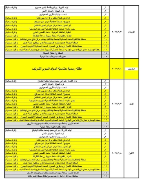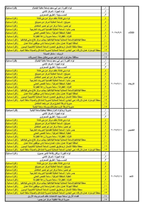 9- محطة اتوستراد عمان-الزرقاء /حي الجندي/ الساحة المحاذية لمديرية المشاغل والصيانة سلطة المياه.