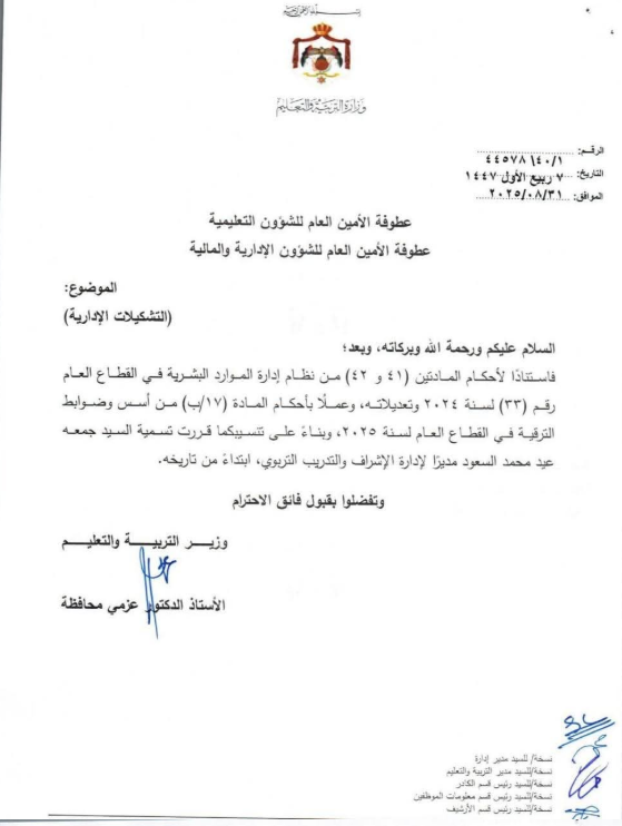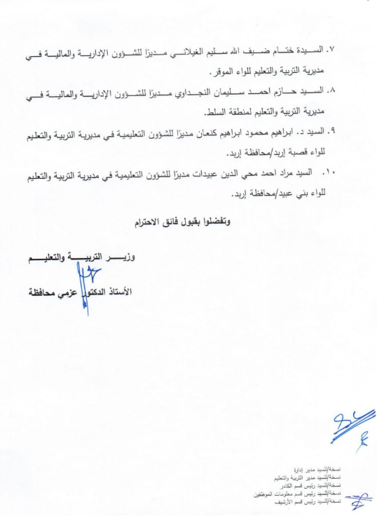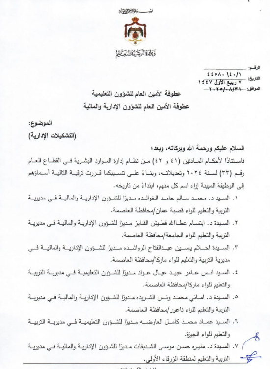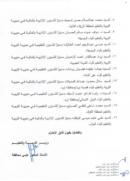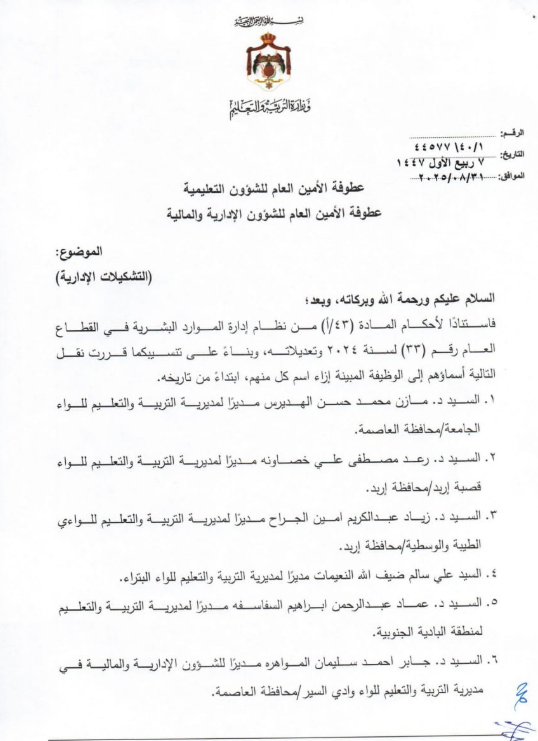 أجرت وزارة التربية والتعليم اليوم الأحد، تشكيلات إدارية واسعة، شملت تعيين مدراء تربية جدد، إضافة إلى قرارها بإحداث ترقيات في دوائر أخرى.