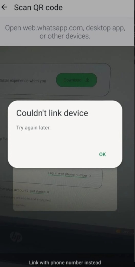 وأفاد المستخدمون بأن محاولاتهم لربط حساباتهم من خلال "مسح رمز الاستجابة السريع (QR code)" باءت بالفشل، حيث تظهر لهم رسالة خطأ "Couldn't link device – Try again later".