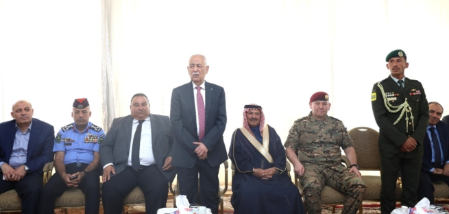 مندوبا عن جلالة الملك عبدالله الثاني، وسمو الأمير الحسين بن عبدالله الثاني، ولي العهد، قدم رئيس الديوان الملكي الهاشمي يوسف حسن العيسوي، اليوم الأحد، واجب العزاء إلى عشائر بني خالد والسردية.