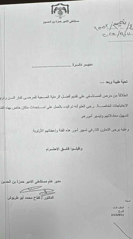 وجاء في كتاب رسمي صادر عن مدير عام المستشفى، الدكتور كفاح محمد أبو طربوش، أن هذه المبادرة تأتي انطلاقاً من حرص المستشفى على تقديم أفضل الخدمات الصحية والإنسانية
