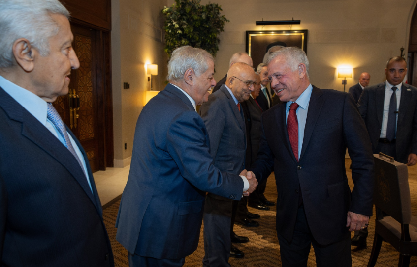 التقى الملك عبدﷲ الثاني، اليوم الأحد، برؤساء وزراء سابقين في قصر الحسينية، إذ تحدث عن التطورات في المنطقة ونتائج زيارته إلى نيويورك الأسبوع الماضي للمشاركة في اجتماعات الجمعية العامة للأمم المتحدة، واصفاً إياها بالناجحة.