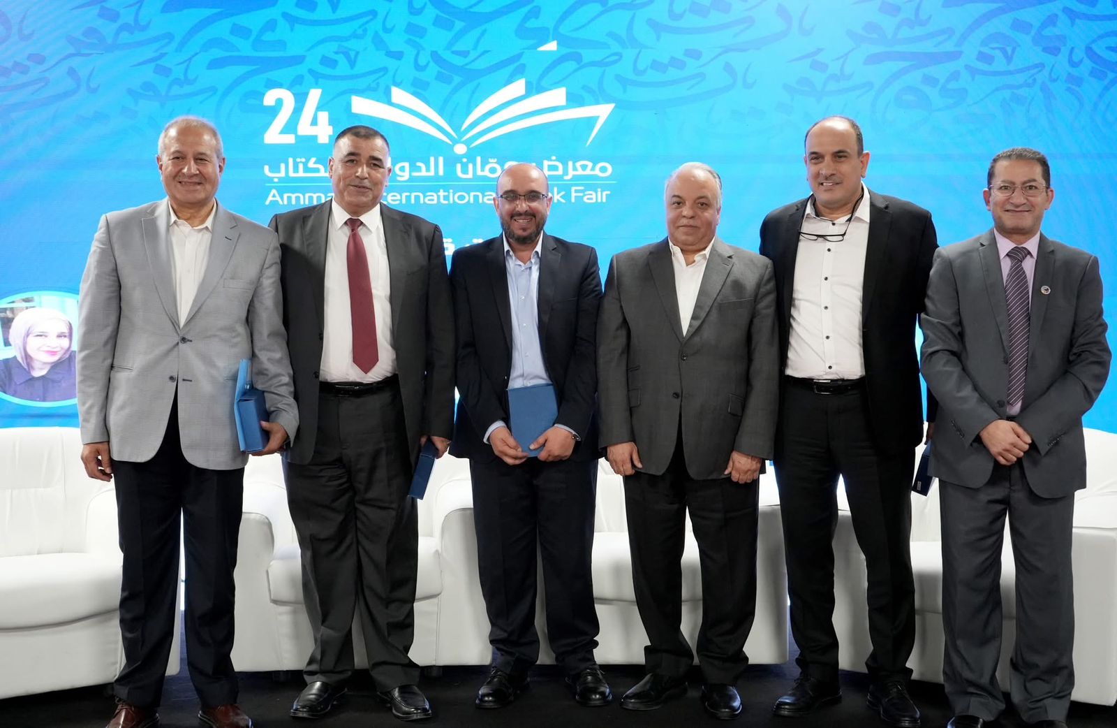 وفي نهاية الندوة، كرم رئيس اللجنة الثقافية لمعرض عمان الدولي للكتاب، جعفر العقيلي، برفقة الدكتور منذ الحوارات المشاركين في الندوة بدرع معرض عمان الدولي للكتاب 2025.