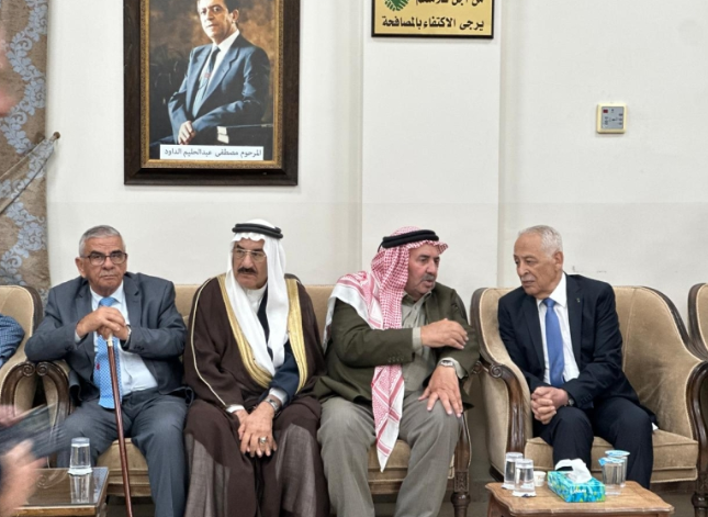 مندوبا عن جلالة الملك عبدالله الثاني، وسمو الأمير الحسين بن عبدالله الثاني، ولي العهد، قدم رئيس الديوان الملكي الهاشمي يوسف حسن العيسوي، اليوم السبت، واجب العزاء إلى عشيرة أبو سليم بوفاة عمران عارف أبو سليم، شقيق أمين عام وزارة الداخلية الأسبق خميس أبو سليم.